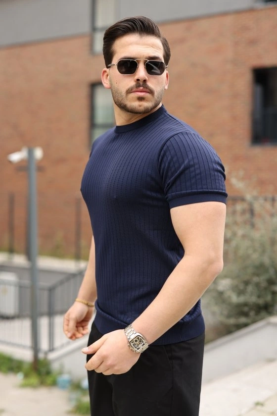 Erkek Fitilli Bisiklet Yaka Triko Tişört