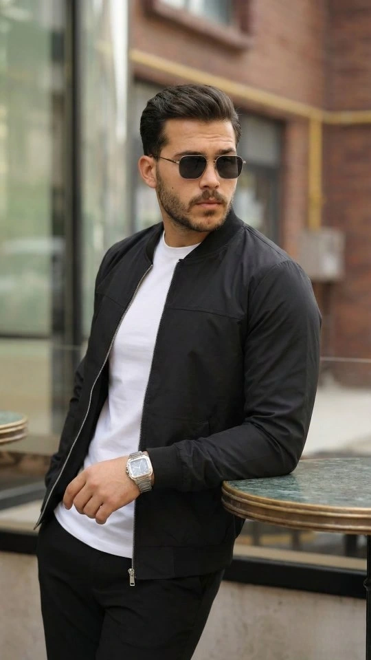 Erkek İçi Astarlı Su Geçirmez Bomber Mevsimlik Ceket - Siyah