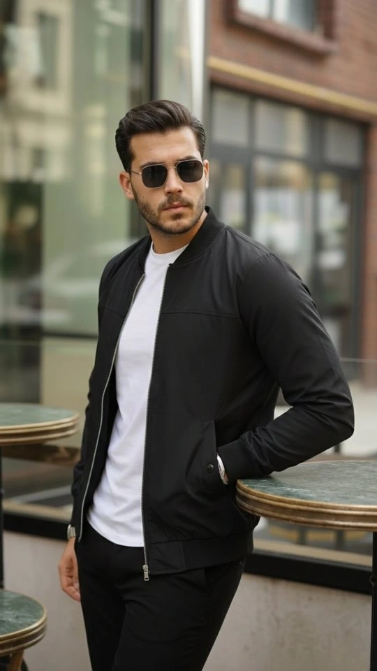 Tam Kalıp Uzun Kol Baskılı Bomber Ceket - Siyah