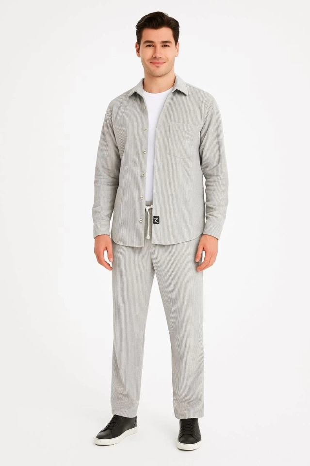 Erkek Kadife Oversize Takım – Gömlek Ve Pantolon İkili Set Füme Corduroy Şıklığı, Rahat Ve Zarif Duruş Yumuşak Dokulu Kadife Kumaş, Düğmeli Gömlek Üst Ve Lastikli Pantolon Alt Parça Ile Gün Boyu Konfor- Gri