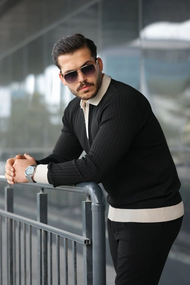 Erkek Kol Ve Yaka Detaylı Uzun Kollu Triko