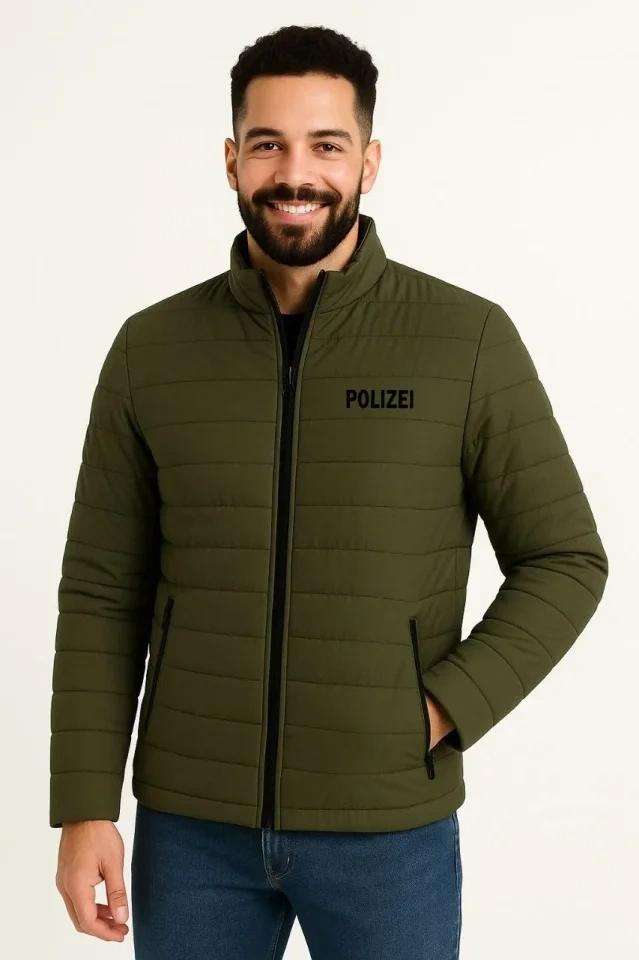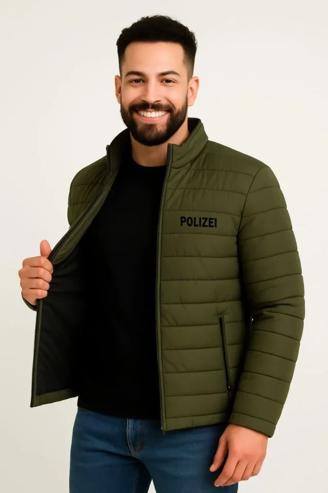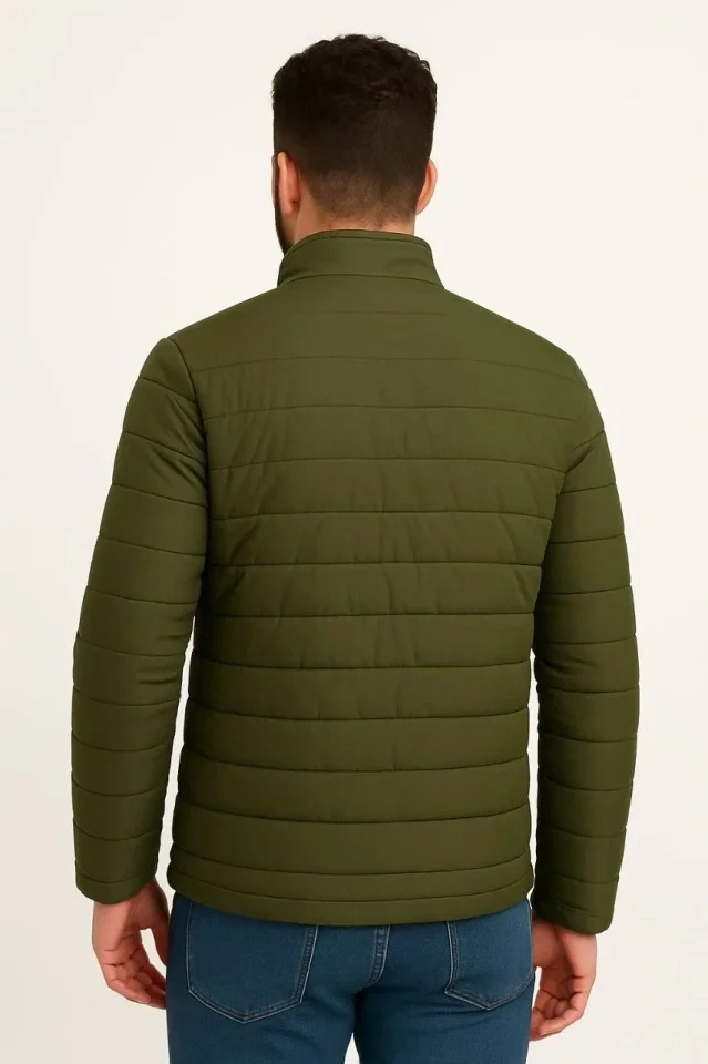 Erkek Mikro Su İtici Kapitone Baskılı Astarlı Fermuarlı Bomber Mont - Haki