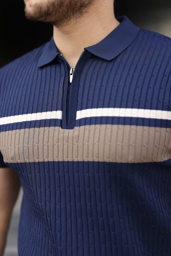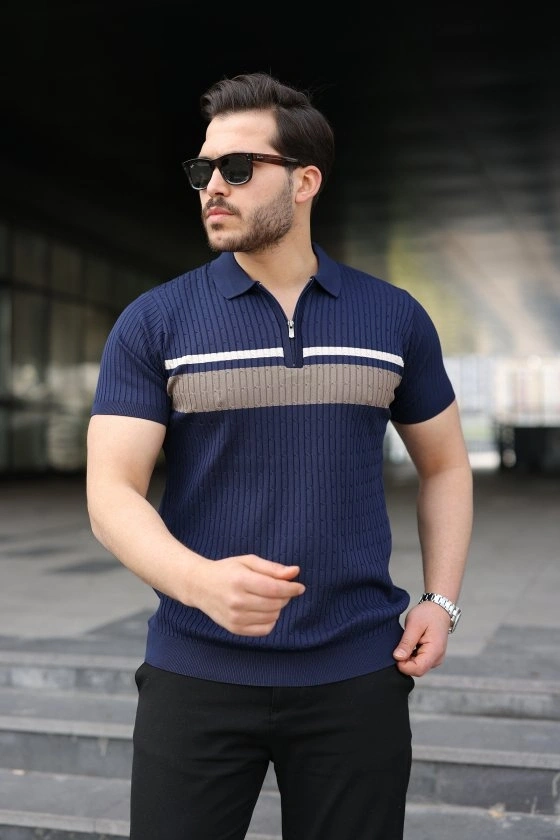 Erkek Örgü Desenli Renkli Kısa Kollu Triko Tişört
