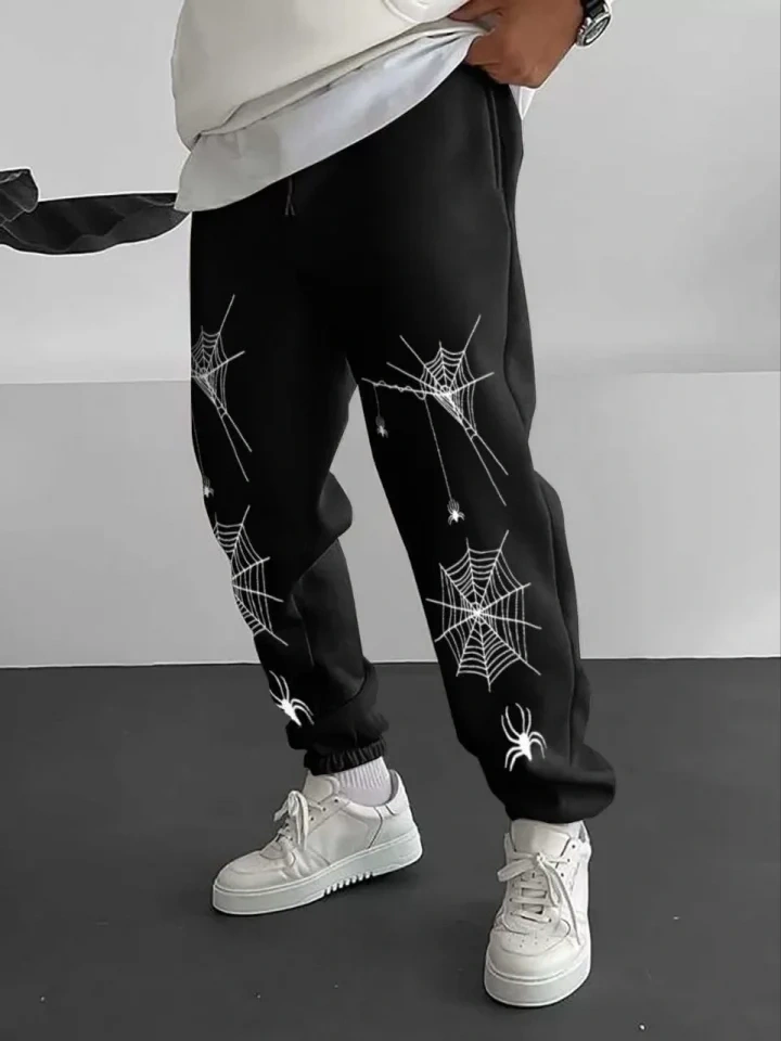 Erkek Örümcek Baskılı Eşofman Altı - Siyah