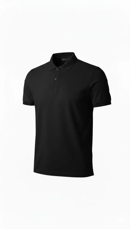 Erkek Pike Kumaş Düğmeli Yaka Regular Fit Günlük Kısa Kol Tişört T-shirt - Siyah