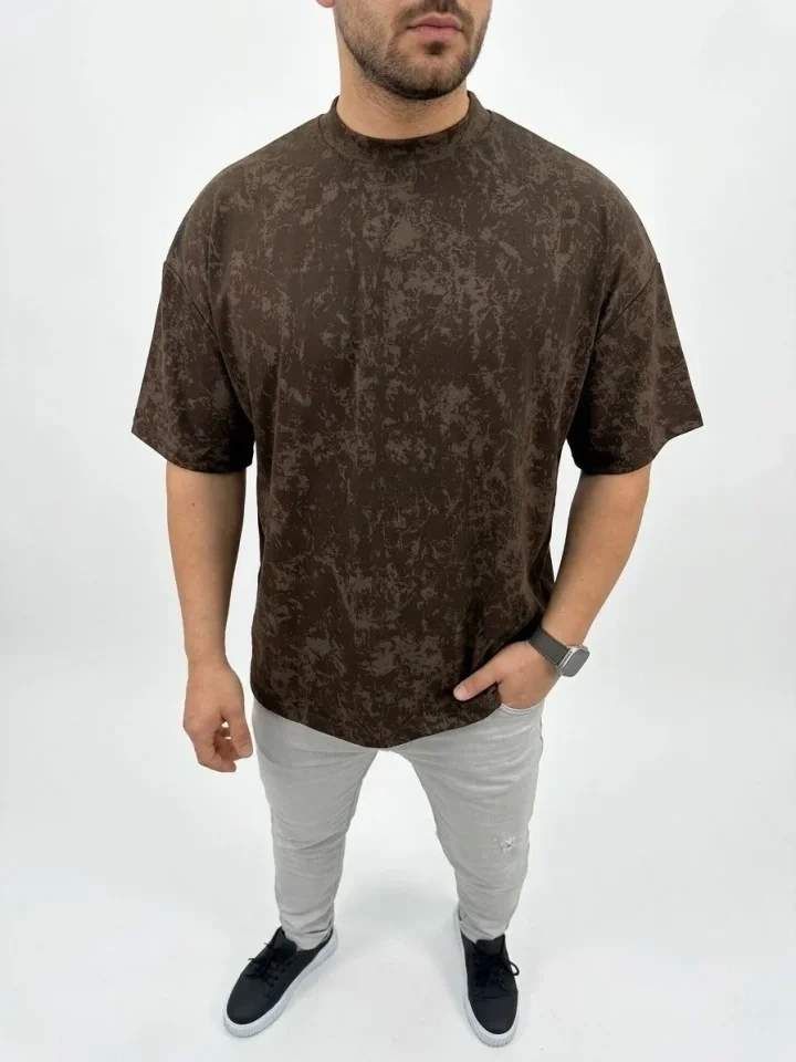 Erkek Premium Tişört OSY Yumuşak Dokulu Yıkamalı Oversize T-Shirt - Kahverengi