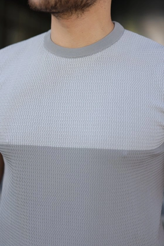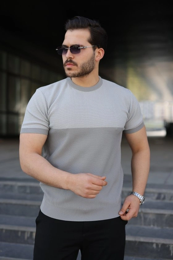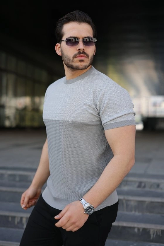 Erkek Örgü Desenli Renkli Kısa Kollu Triko Tişört
