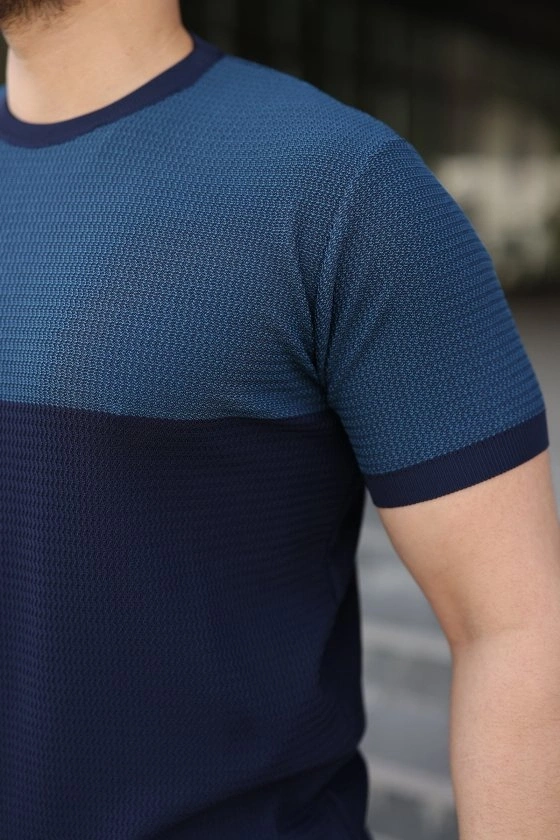 Erkek Renk Bloklu Bisiklet Yaka Kısa Kollu Triko Tişört