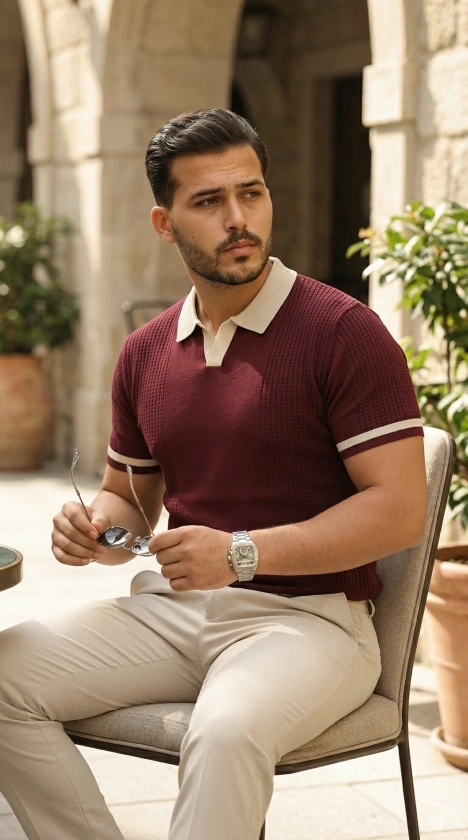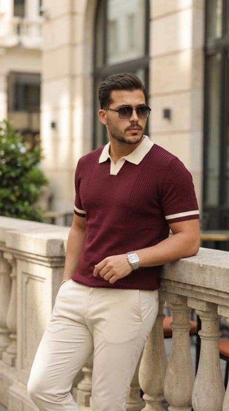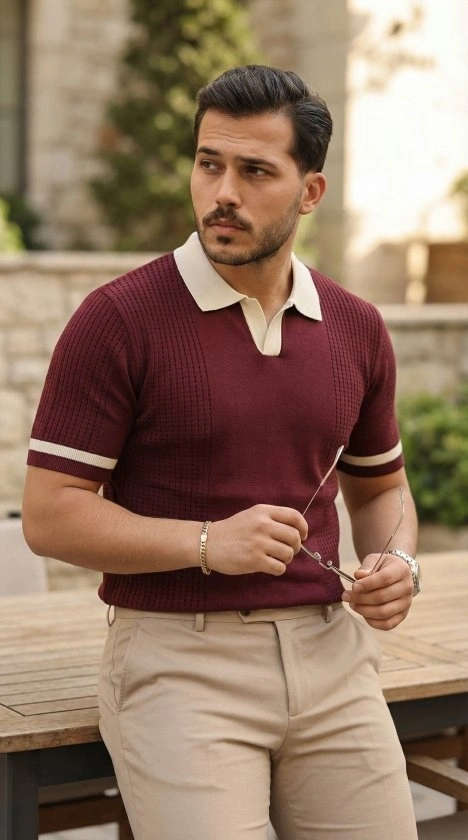 Erkek Örgü Desenli Renkli Kısa Kollu Triko Tişört