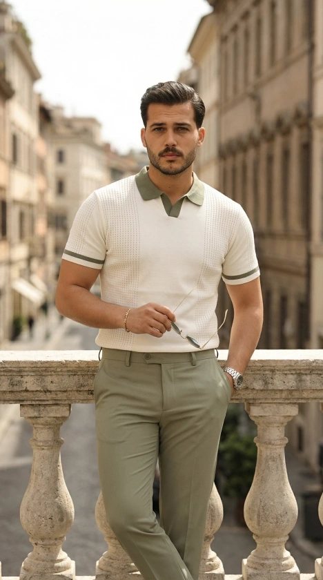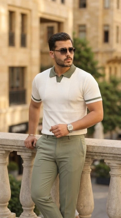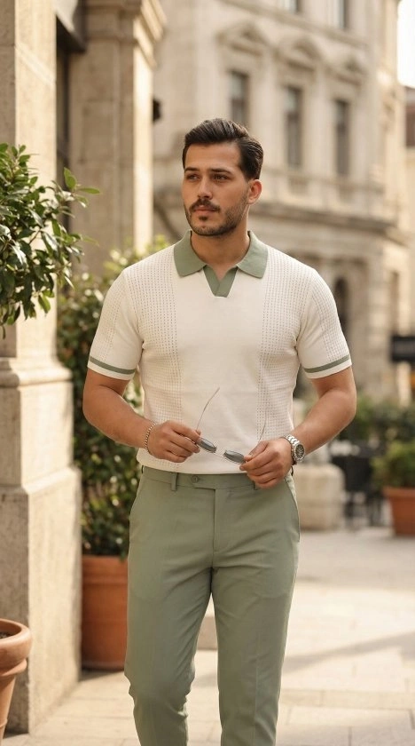 Erkek Örgü Desenli Renkli Kısa Kollu Triko Tişört