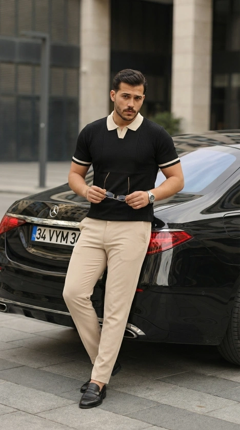 Erkek Düğme Yakalı Kısa Kollu Pamuk Triko Tişört