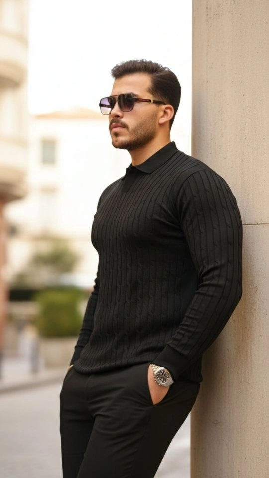 Erkek Düğme Yakalı Triko