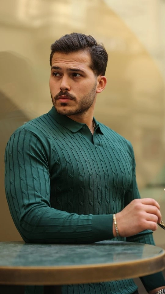 Erkek Saç örgü Desenli Uzun Kollu Triko