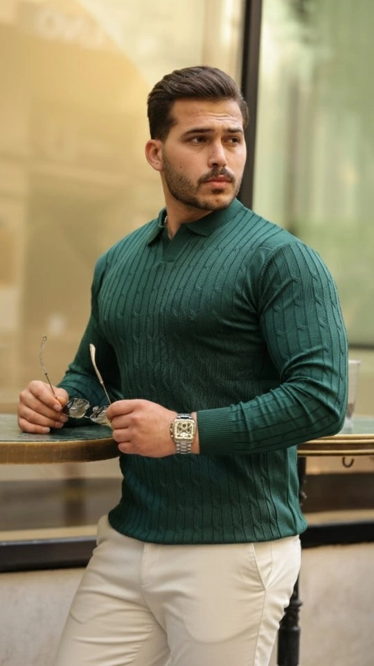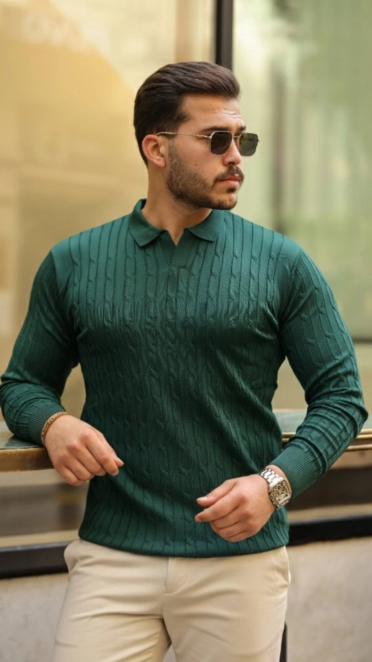 Erkek Pirinç Desenli Uzun Kollu Yakalı Triko