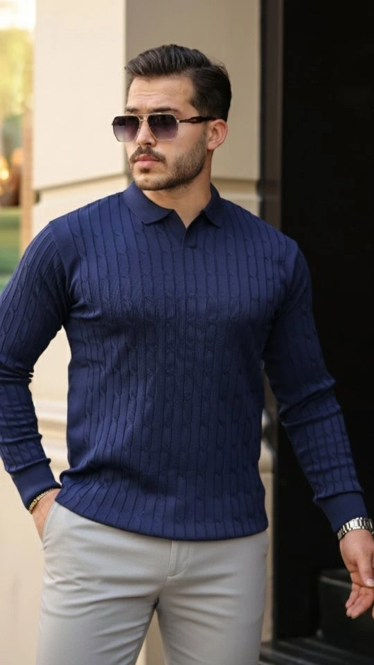 Erkek Pirinç Desenli Uzun Kollu Yakalı Triko