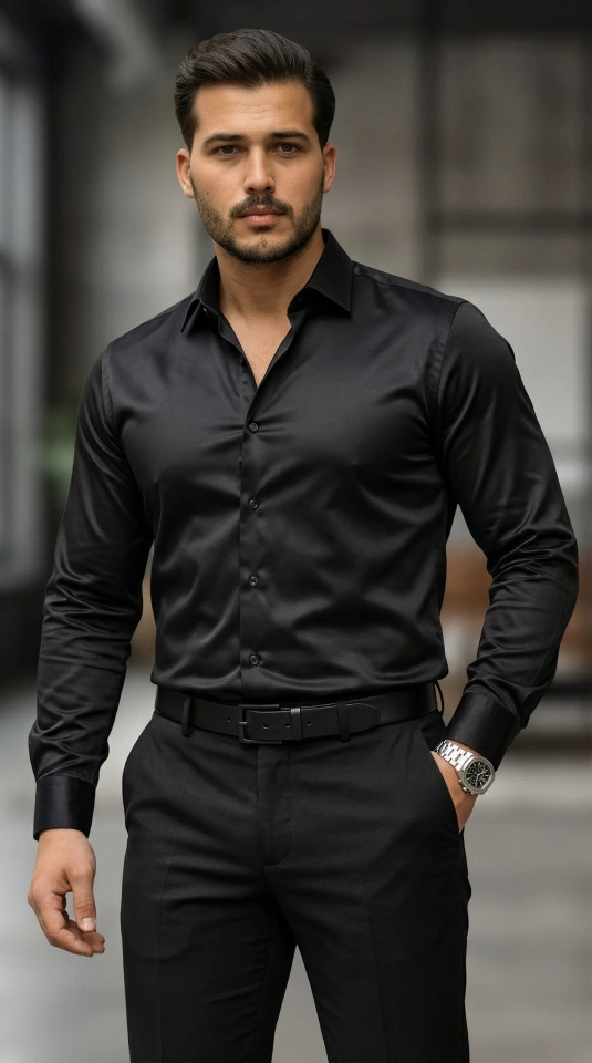 Erkek Waffle Dokuma Açık Yakalı Düğmeli Regular Kalıp 2’li Gömlek Seti - Siyah - Beyaz