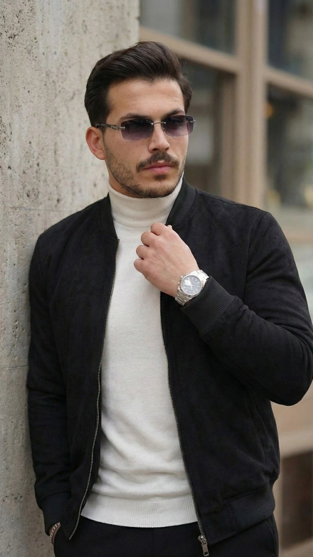 Erkek Scuba Süet Kumaş Bomber Hırka