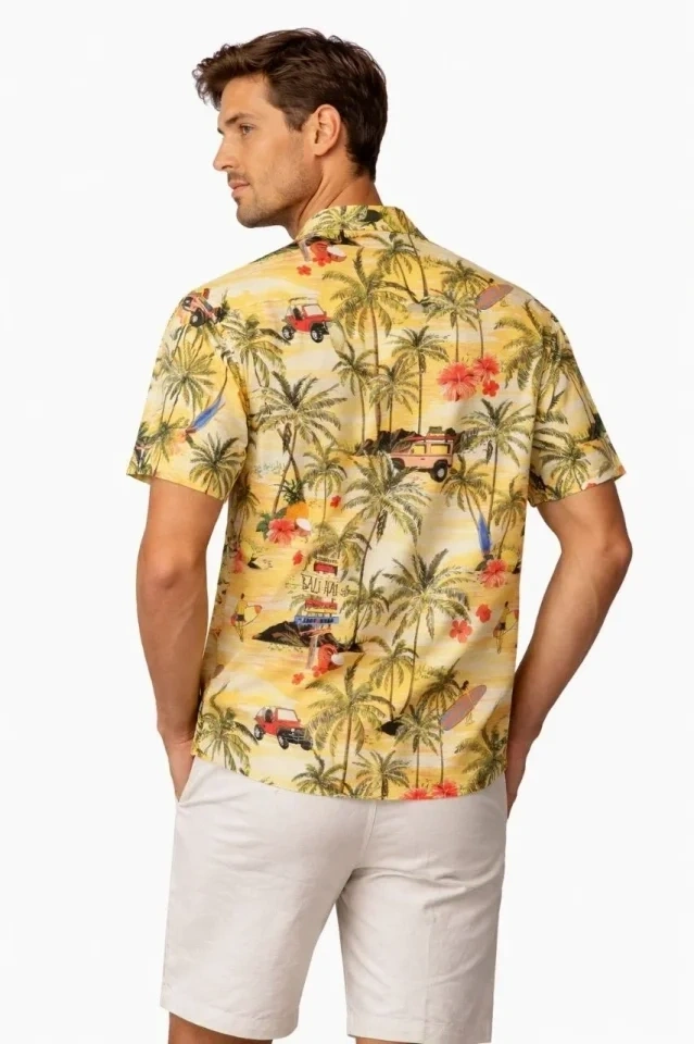Erkek Hawaii Tarz Tropikal Palmiye Desenli Kısa Kol Gömlek Rahat Kalıp Yazlık - Desenli