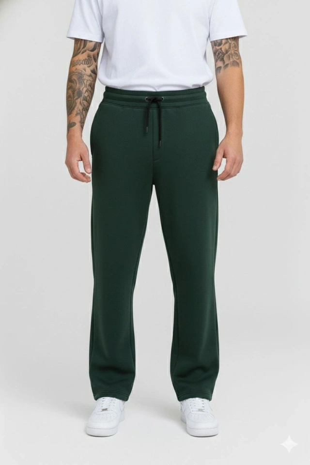 Erkek Üç Iplik Kışlık Pamuklu Ovarsize Bağcıklı Düz Paça Cepli Eşofman Altı Spor Rahat Model - Haki