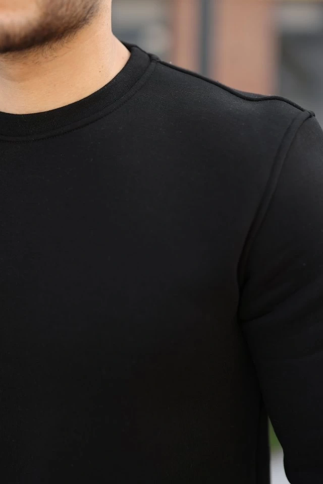 Erkek Premium Parçalı Eşofman Takım - Dik Yaka Fermuarlı Biyeli Sweatshirt Lastik Paça Alt, Oversize 3 Iplik Şardonlu - Siyah
