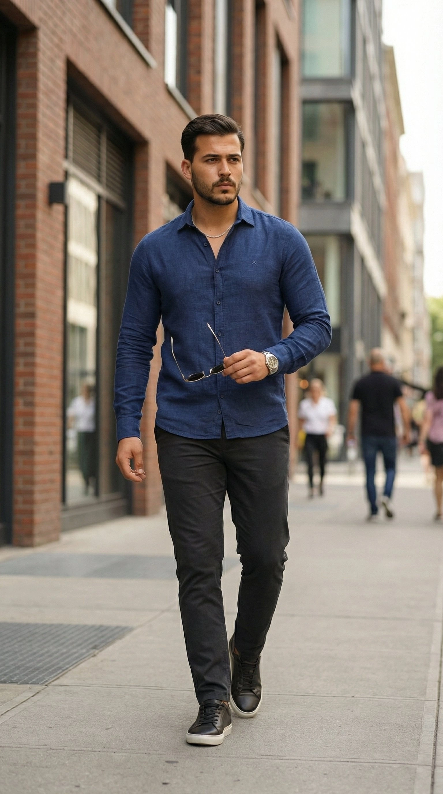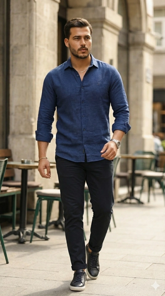 Erkek Uzun Kollu Rahat Keten Gömlek