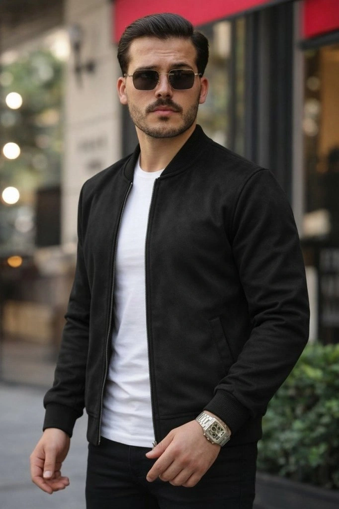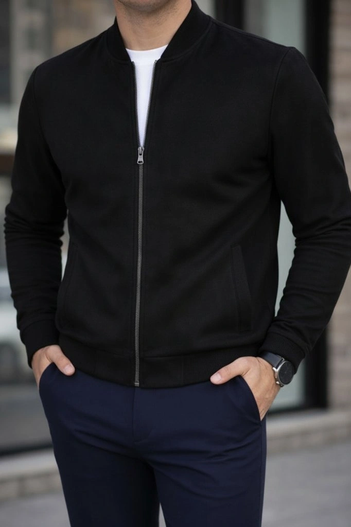 Erkek Düz Bomber Ceket - Siyah
