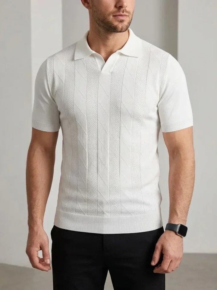 Erkek Yazlık Triko Dokuma Tişört Kısa Kol Polo Yaka T-Shirt - Beyaz