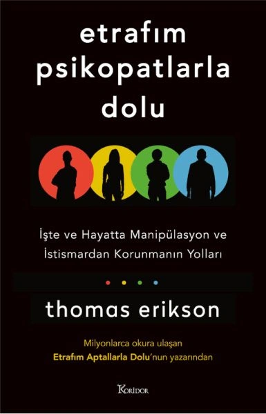 Dünyada üç milyondan fazla satan Etrafım Aptallarla Dolu’nun yazarı Thomas Erikson Etrafım Psikopatlarla Dolu’da tecrübeyle sabit araştırmalara dayanarak hayatlarımızdaki olağan psikopatları teşhis ediyor. Yine dört renk kişilik sistemini kullanan davranış uzmanı Erikson, her renge bürünebilen bu psikopatların farklı karakter tiplerindeki insanları manipüle ederken nasıl taktikler kullandıklarını ortaya seriyor.