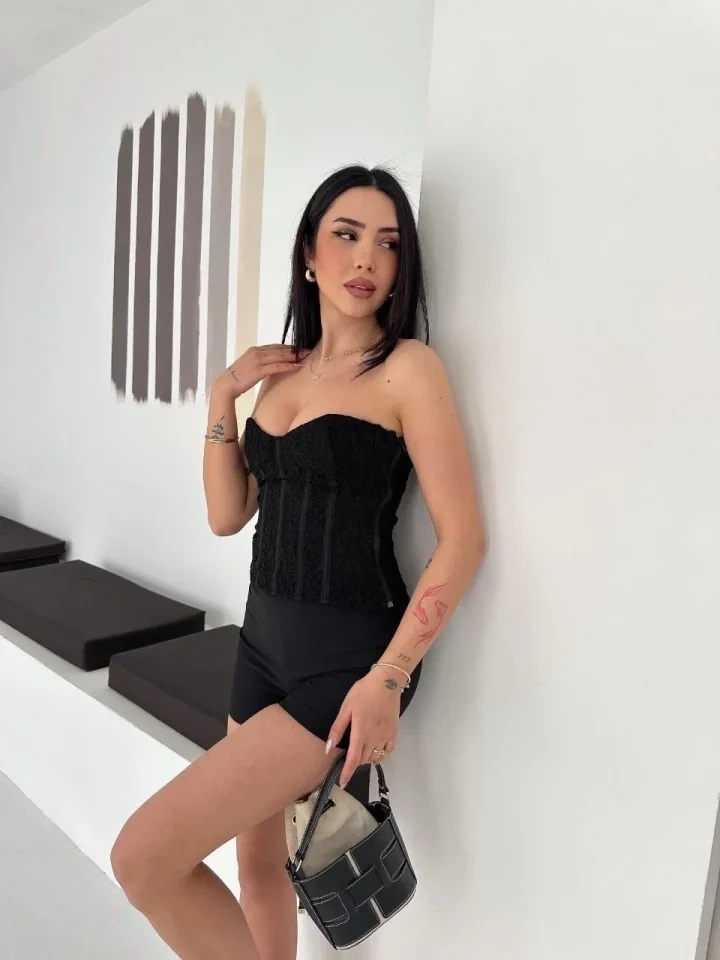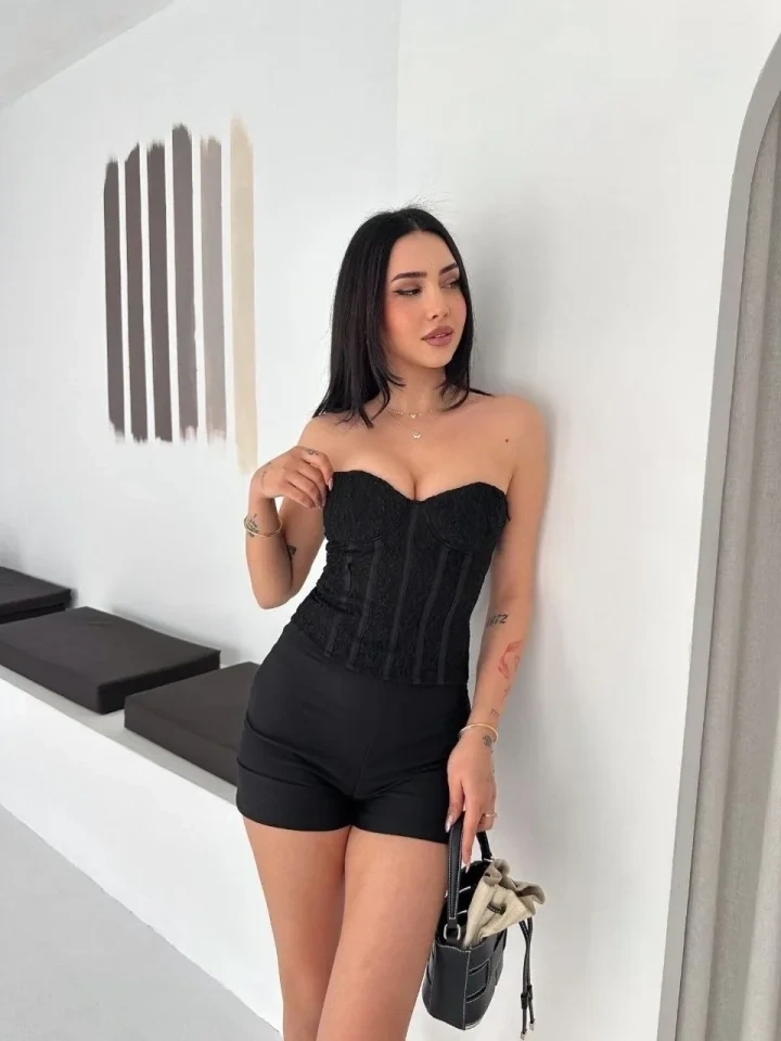 Fermuarlı Dantel Korse Straplez Bustiyer Transparan Şık Top - Siyah