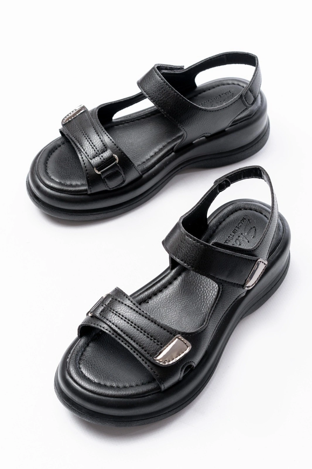 Ginya Siyah Cilt Cırt Cırtlı Sandalet