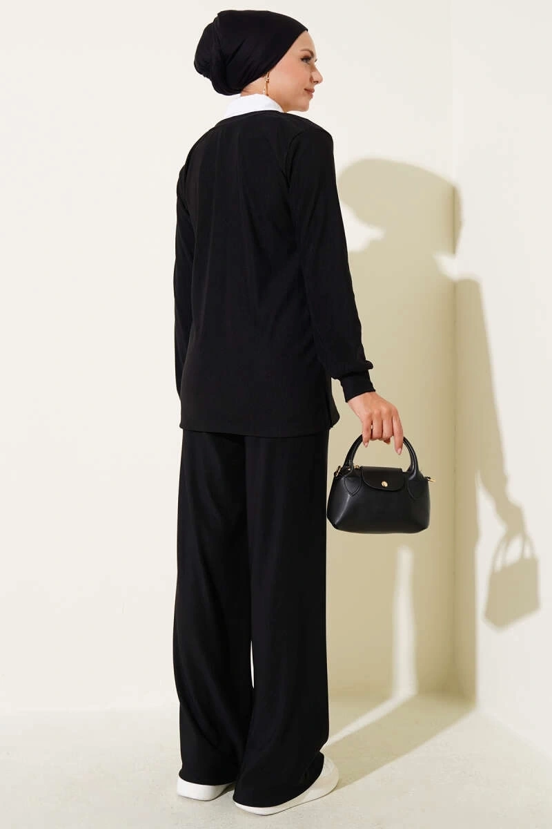 Gömlek Yaka Fitilli Salaş İkili Takım siyah T4300