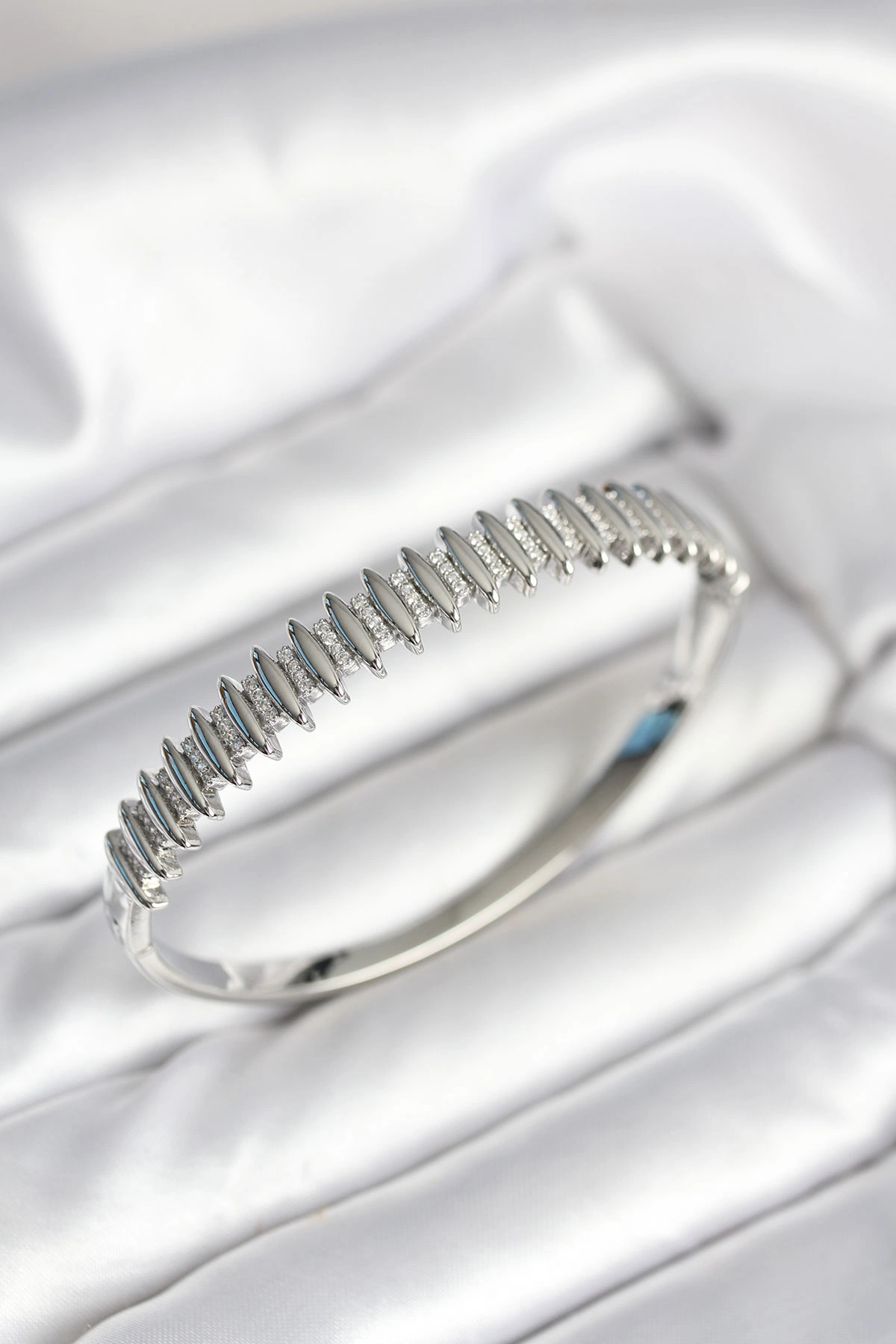 Gümüş Renk Zirkon Taşlı Pirinç Kadın Kelepçe