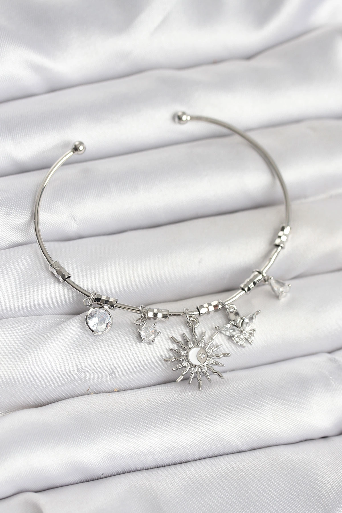 Güneş Charmlı Gümüş Renk Pirinç Kadın Bileklik