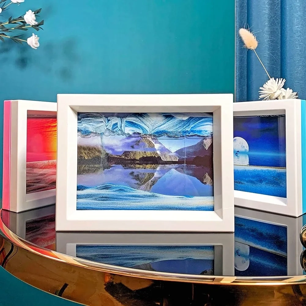 Hareketli Kum Resim İllüzyon Doğal Manzara 2 Yüz Çerçeveli 3D Görüş Masaüstü Sanat Aynalı (4940)