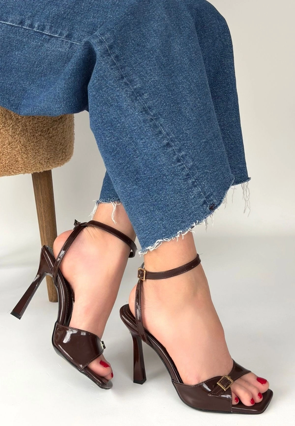 Hoste Kahverengi Rugan Topuklu Bilekten Kemerli Ayakkabı