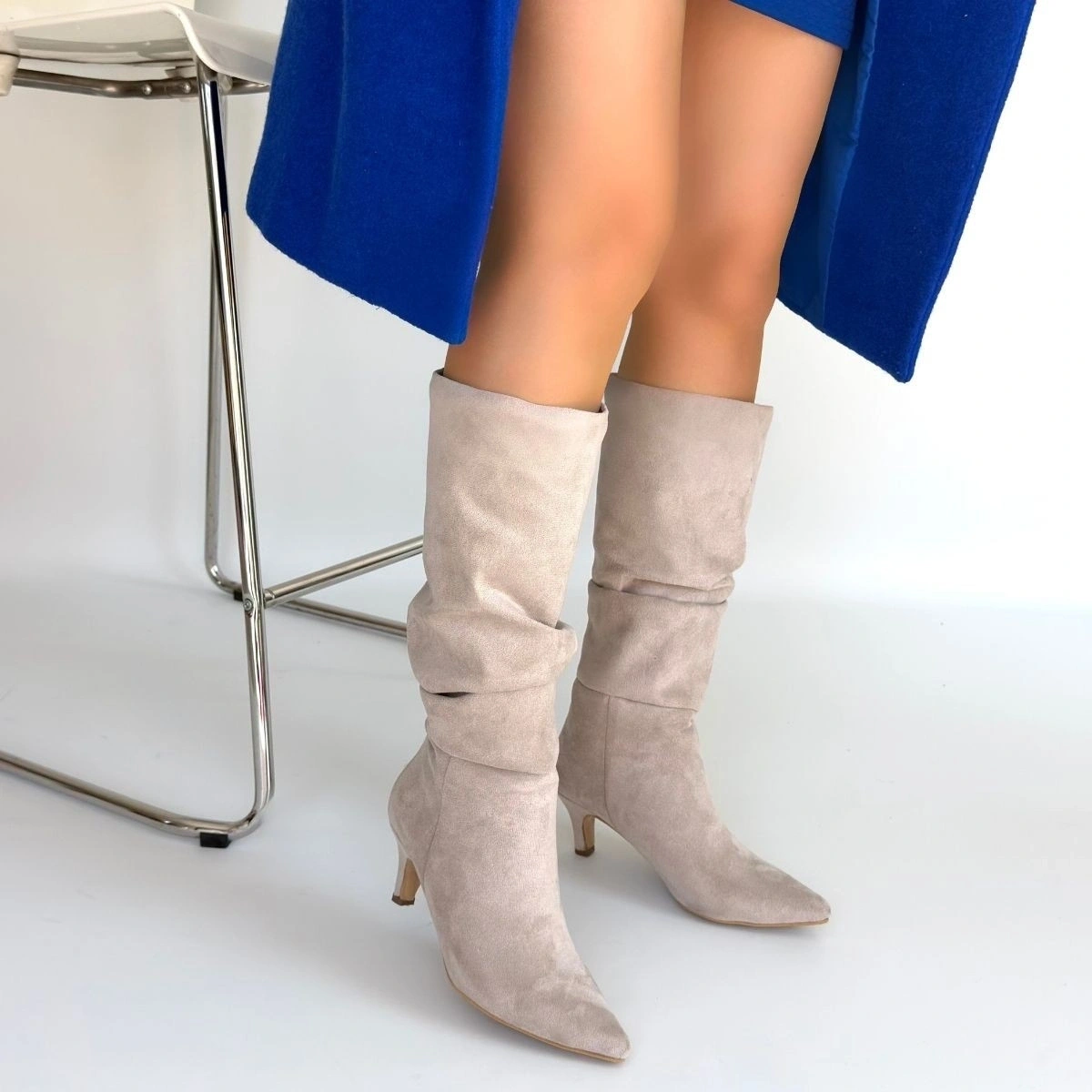 İwon Bej Süet Körüklü Çizme