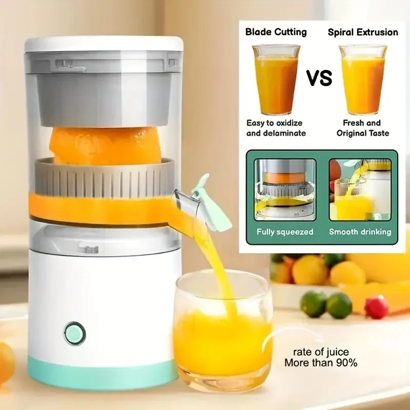 KABLOSUZ VE TAŞINABİLİR TASARIM: Elektrikli Narenciye Sıkacağı, Şarj için USB-C Teknolojisini Kullanır. Kablosuz Narenciye Sıkacağımızı Açık Hava Kampına götürün ve Gücün Bitmesinden Endişelenmeyin. Tek Tıkla Her Zaman ve Her Yerde Lezzetli Meyve Suyunun Keyfini Çıkarın. YÜKSEK SU VERİMİ : Basın ve Portakalla İletişim Kurun, Meyve Suyu Çok Daha Lezzetli! Bu Elektrikli Portakal Sıkacağı, Yavaş Hız Sistemli Ekstrakt Suyu. Meyvenin Saf Lezzetini Sağlar. KULLANIMI VE TEMİZLİĞİ KOLAY : Meyve Sıkacağı Sıkacağı Birkaç Parçaya Monte Edilmiştir, Kolay Ayırma ve Temizleme için Tamamı Sökülebilir. Temizlemeye Yardımcı Olacak Bir Fırça İle Donatılmıştır. Ancak Ana Gövdeyi Lütfen Yıkamayınız, Islak Bez İle Silinmesi Tavsiye Edilir, Diğer Parçalar Elde Yıkanabilir. KOMPAKT TASARIM : Boyut Son Derece Kompakt ve Taşınabilirdir. Hiç Yer Kaplamaz. İster Evde Kullanın, İster Pikniğe Giderken Yanınızda Getirerek Günün Her Saatinde Besleyici Bir Meyve Suyu İçebilirsiniz. GÜVENLİ KULLANIM : Tüm Meyve Sıkacağı Parçalarımız, Güvenli ve Toksik Olmayan Yüksek Kaliteli ABS+AS Malzemesinden Yapılmıştır. Size ve sevgilinize her gün lezzetli meyve suyu verir! Meyvenin Yapışmasını Önlemek İçin Lütfen Meyveyi Önceden Yarım veya Daha Küçük Kesin. Kullanım Sırasında Fişi Takmanıza Gerek Yok. Tamamen Şarj Olduktan Sonra Kullanın ve Şarj Halinde Kullanmayın. Şarj Etmesi 1,5-2 Saat Sürer ve Tamamen Şarj Olduğunda Gösterge ışığı Kırmızıdan Beyaza döner.