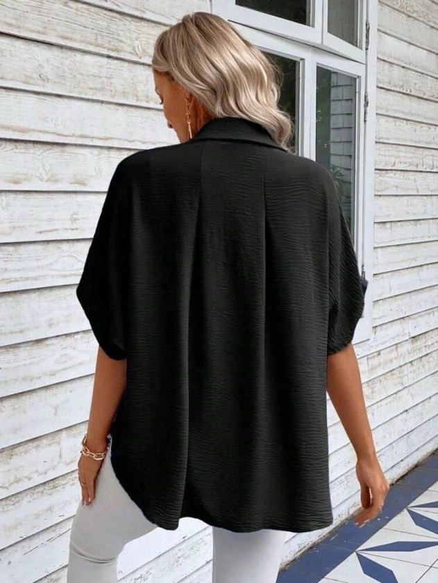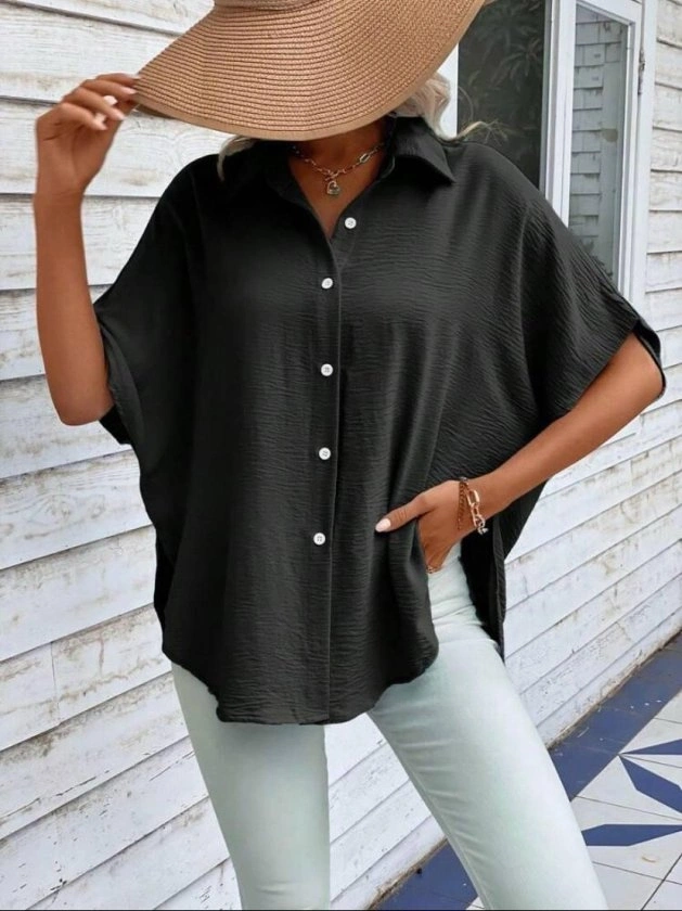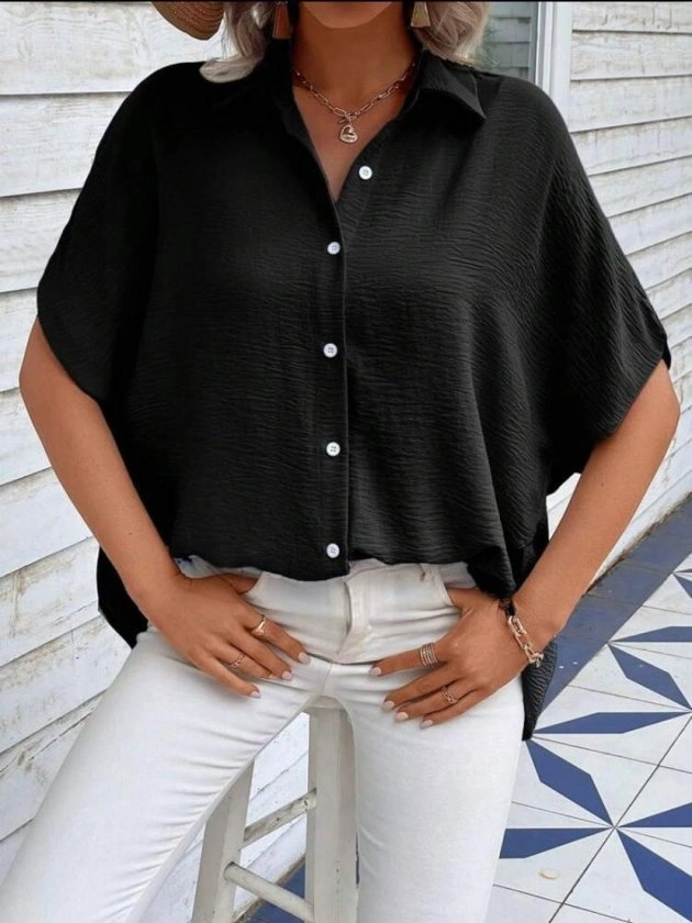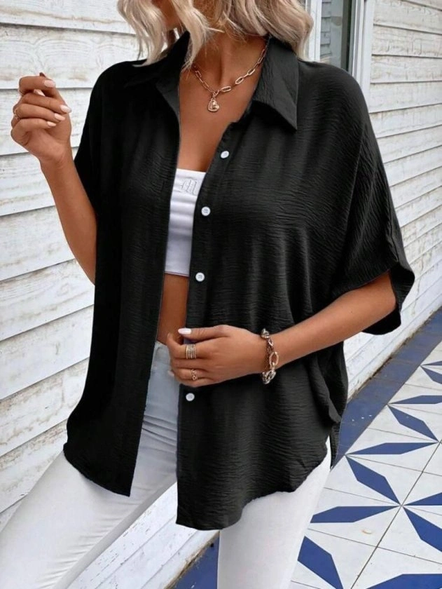 Kadın Aerobin Kumaş Oversize Kısa Kollu Gömlek