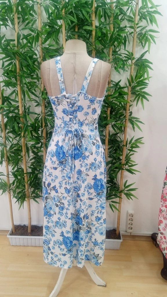 Kadın Askılı Geniş V Yakalı Sırttan Bağlamalı Yırtmaçlı Süprem Elbise