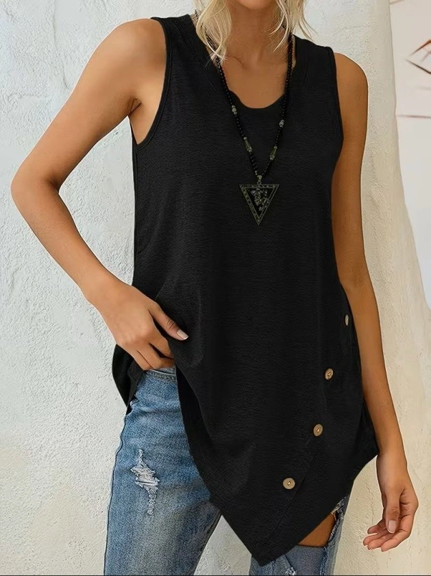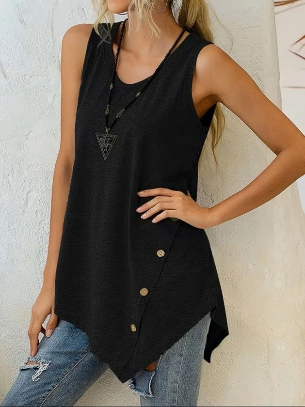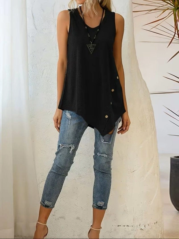 Kadın Askılı Yuvarlak Yakalı Asimetrik Kesim Detaylı Viskon Bluz