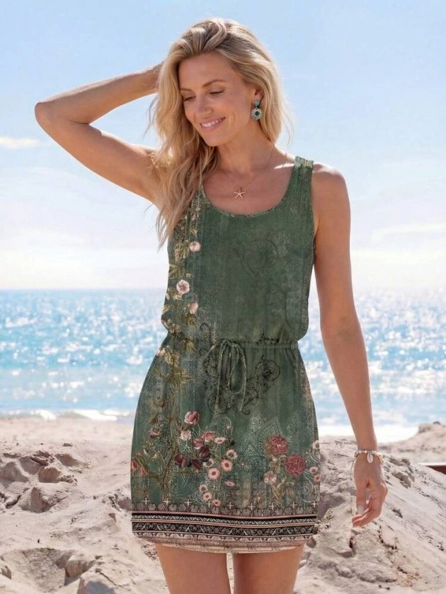 Kadın Askılı Yuvarlak Yakalı Beli Kusaklı çiçek Desenli Kısa Süprem Elbise