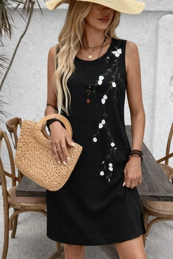 Kadın Askılı Yuvarlak Yakalı çiçek Desenli Kısa Elbise