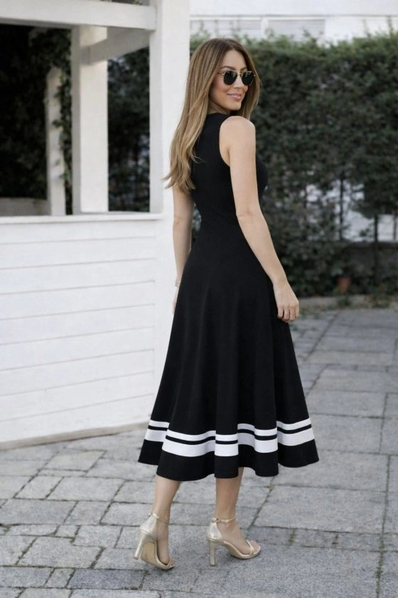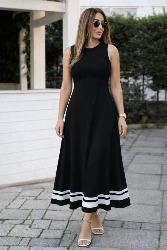 Kadın Askılı Yuvarlak Yakalı Etek Ucu şerit Detaylı Uzun Viskon Elbise