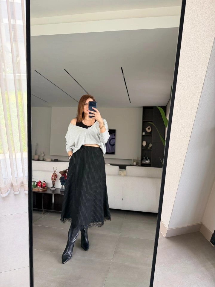 Kadın Atlet Bluz Ve Etek üçlü Takım