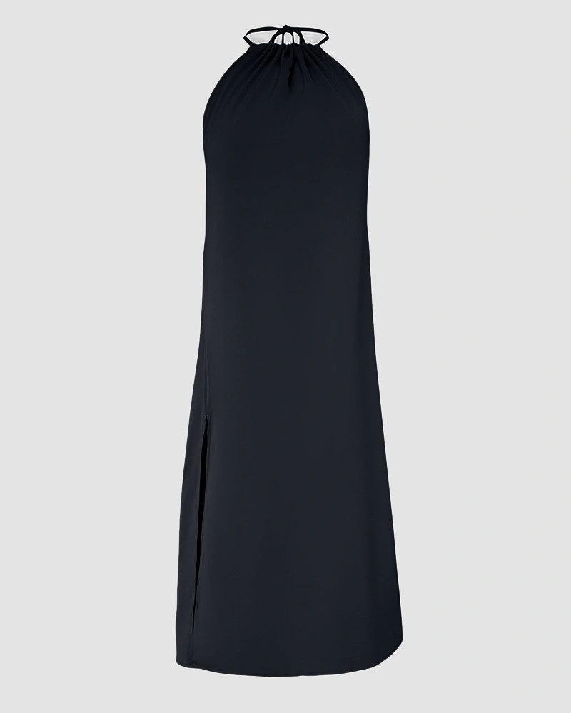 Kadın Boyundan Askılı Halter Kollu Viskon Elbise
