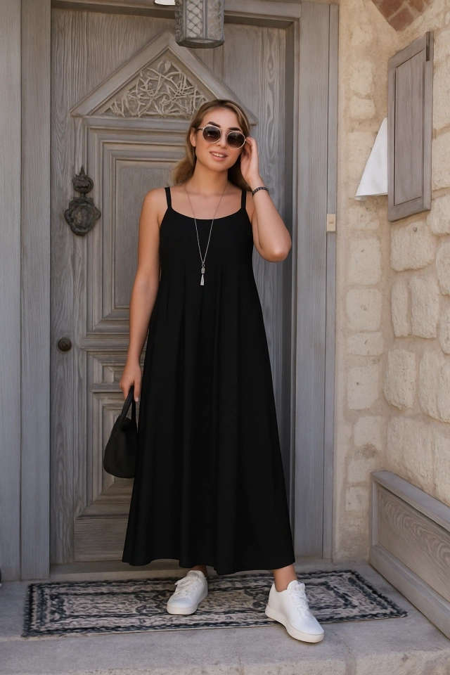 Kadın Ip Askılı V Yakalı Asimetrik Detaylı Aerobin Elbise