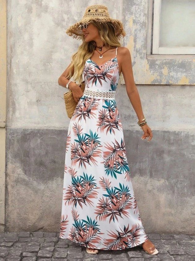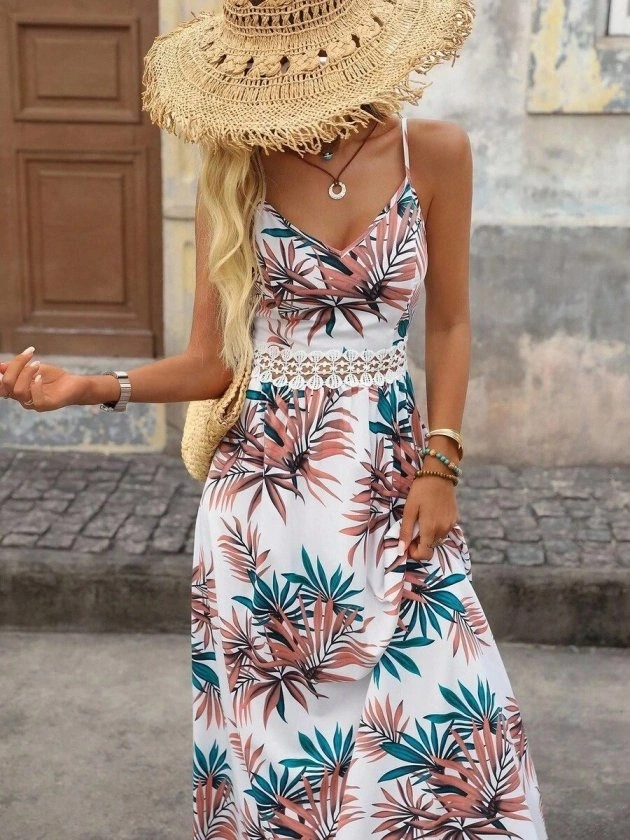 Kadın Ip Askılı V Yakalı Beli Dantelli Uzun Süprem Elbise