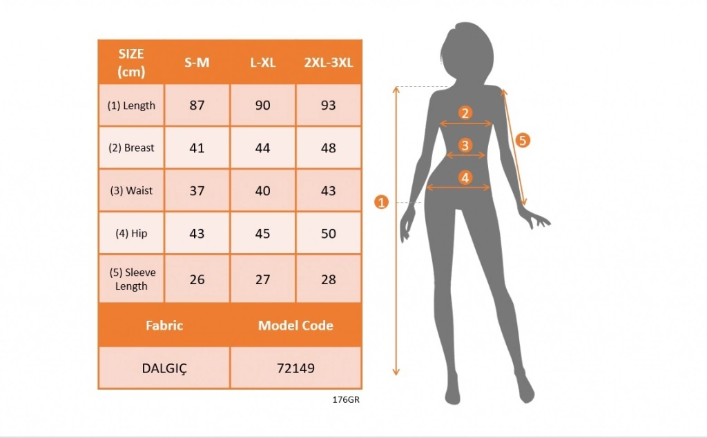 Modelin Ölçüleri: Boy:165, Kg:55, Göğüs:90, Bel:72, Kalça: 100