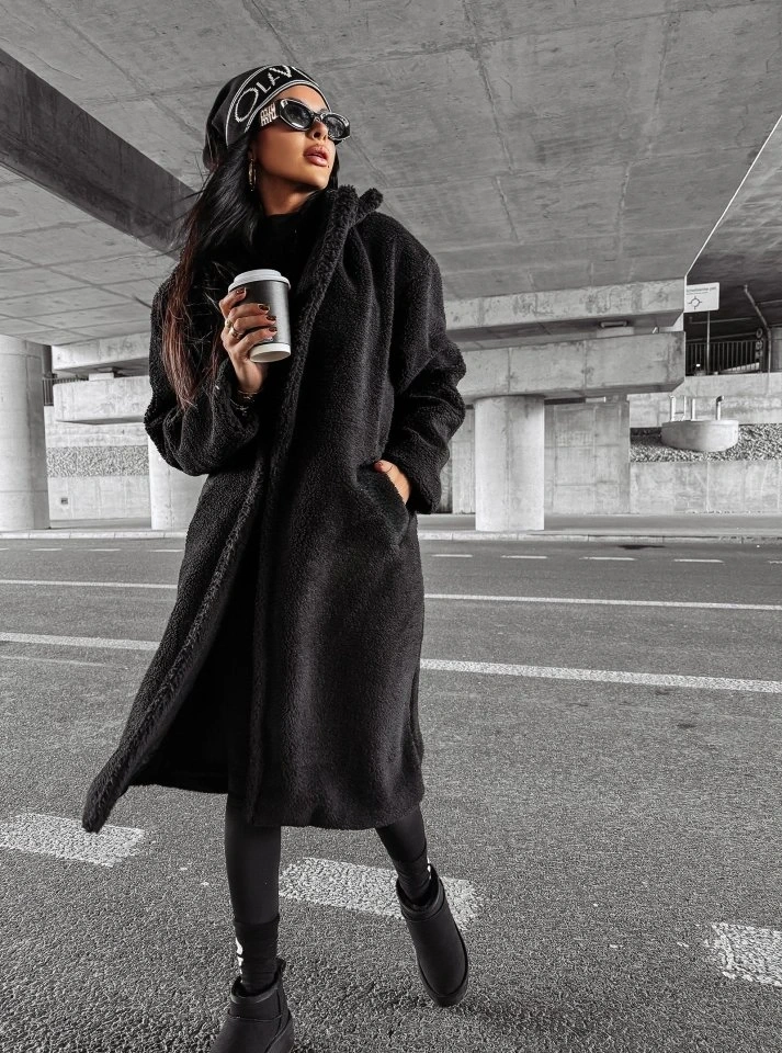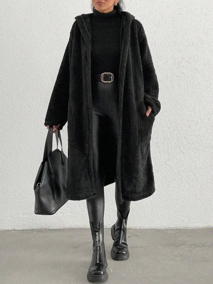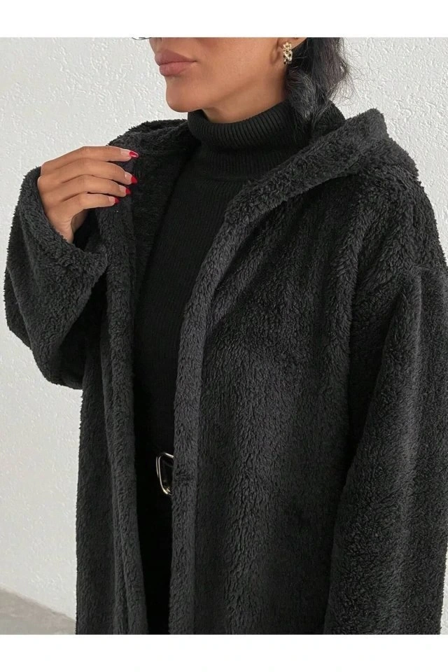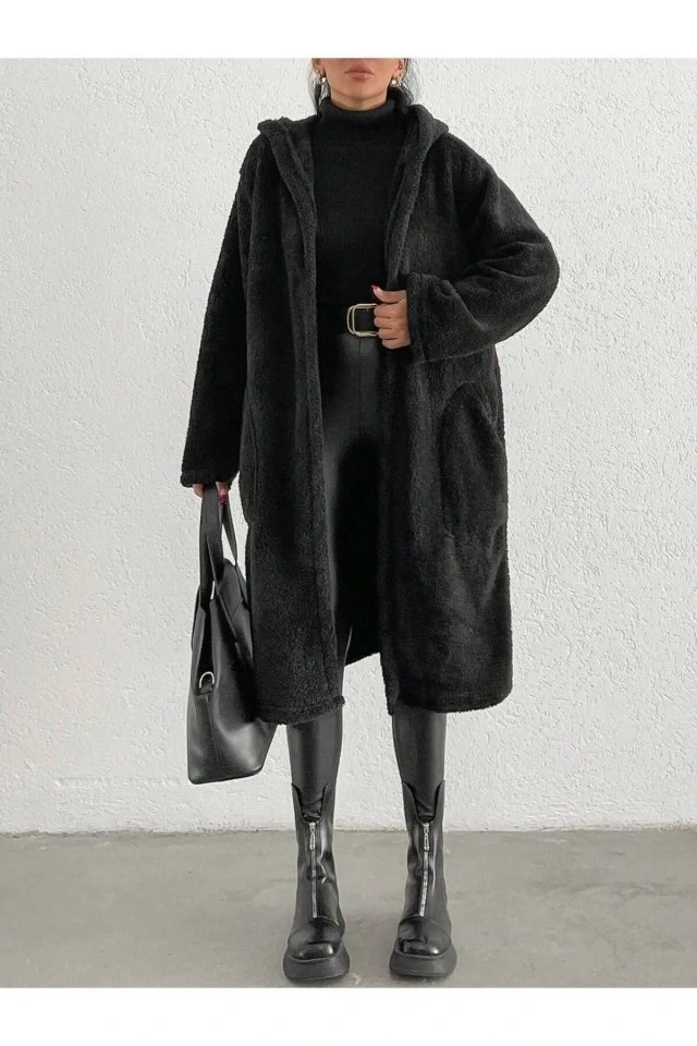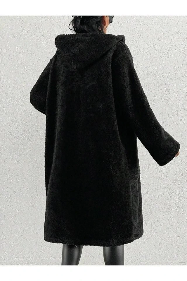 Kadın Kapüşon Ve Cep Detay Uzun Astarsız Wellsoft Ceket