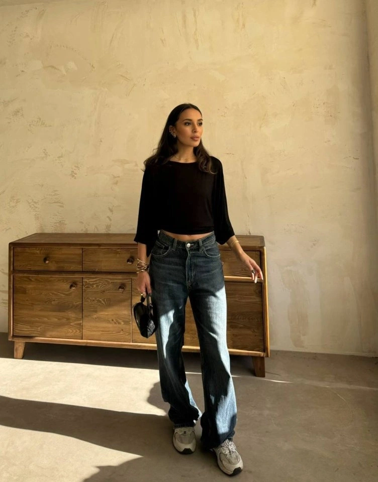 Kadın Kayık Yaka Yarasa Kol Dökümlü Kısa Bluz